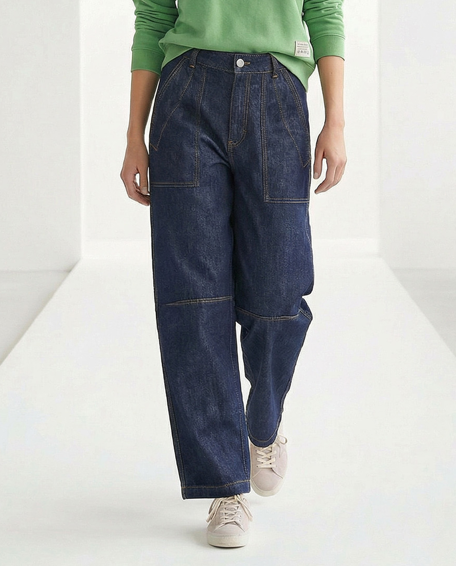 The MILO PANTS, shown here in the denim version, feature a casual and very comfortable cut. The waistband has a concealed closure in the front and an elastic band at the back. This design allows the wearer to wear the pants as a "high waste" or as a "cool waste" with a low crotch on the hips. In both versions, the pants fit perfectly and are very comfortable. See also information on legal protection: https://you-too.shop/pages/patent